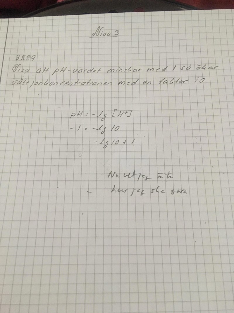 Matematik / Matte 2 / Linjära ekvationssystem 2 svar 346 visningar Päivi behöver inte mer hjälp Avmarkera Päivi 5547 – Avstängd Postad: 11 mar 2018 15:02 pH värdet igen alireza6231 250 – Fd. Medlem Postad: 11 mar 2018 15:34 pH1-pH2=1-lgH+1-(-lgH+2)=1lgH+2-lgH+1=1lgH+2H+1=1H+2H+1=101=10H+2=10H+1 Päivi 5547 – Avstängd Postad: 11 mar 2018 17:56 Tack för det här Användare skriver Svara Du behöver Logga in eller Bli medlem först! Avbryt