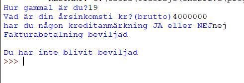 anmärkning = str(input("har du någon kreditanmärkning JA eller NEJ"))