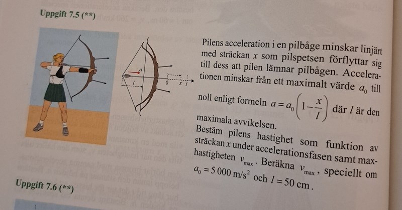 Laguna skrev:Accelerationen är förstås noll innan man släpper pilen, men när man släpper pilen blir a genast lika ned a0.