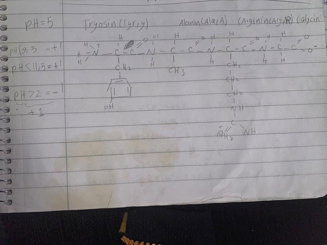 Min lärare vill att vi ska skriva c-terminal som COO- och N-terminal som NH3+, då blir jag lite förvirrad om hur ska piptidbindning se ut och även andra aminogrupper i sidokedja, blir det rätt så här vid PH 5?