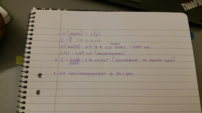Förutsatt att du har en titrerkurva som visar hur pH beror på tillsatt volym NaOH-lösning: