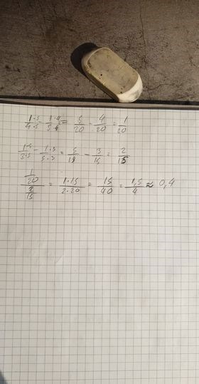 Beräkna 1/4 - 1/5 och 1/3 - 1/5.