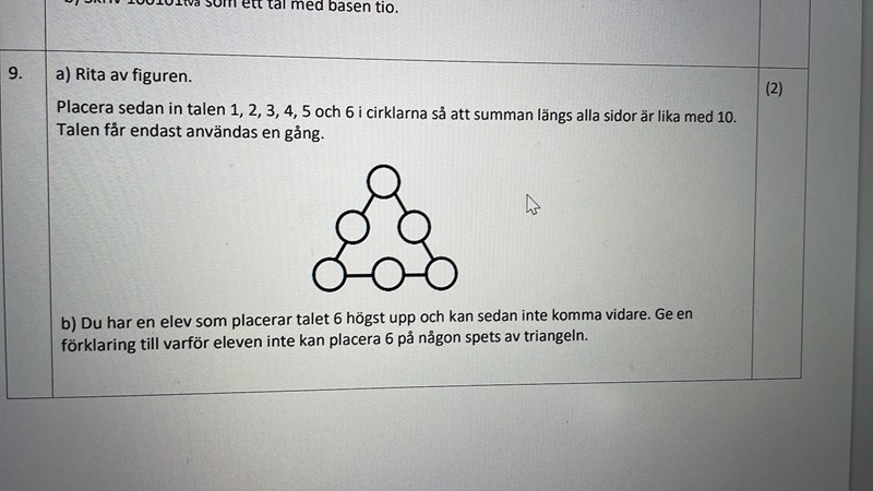 Placera in talen 1,2,3,4,5 och 6 i cirklarna