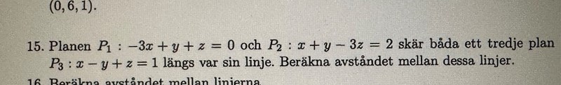 Båda linjerna har riktningsvektor v = (1, 2, 1). Längden av (1, 2, 1) är roten ur 6.