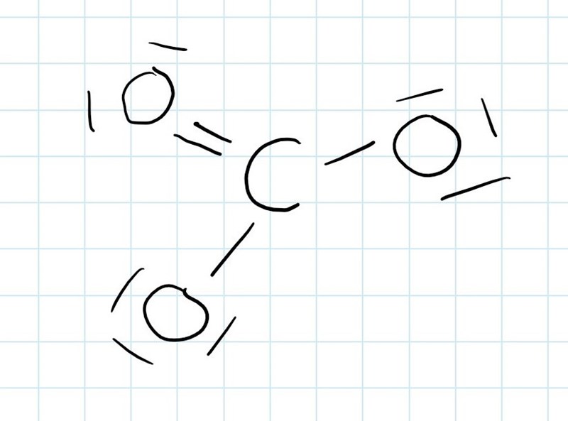 Karbonatjonen kan visas som du ritat den (men då med en negativ laddning på syrena som är nere och till höger, d.v.s. båda som inte har dubbelbindning till kolet).