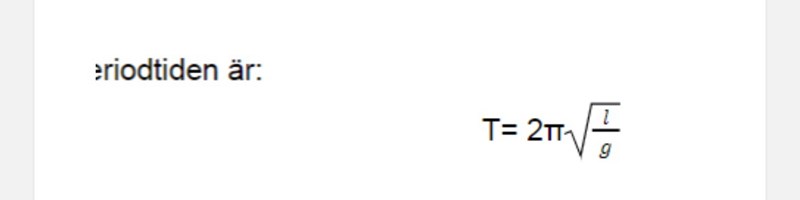 Min T var samma oavsett vinkel och massa. Endast längd och g spelade roll (vilket oxå formeln beskriver).