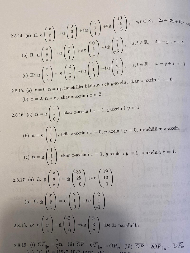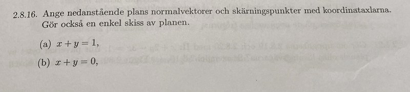 I a) skär ju inte planet z-axeln. I b) ligger alla punkter på z-axeln i planet.