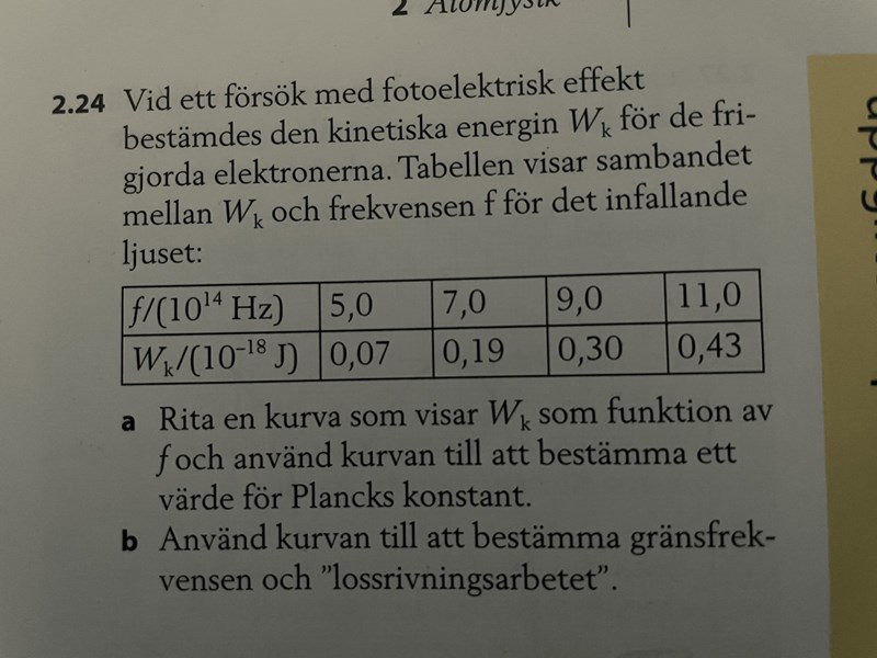 Förstår att h=wk/f men får ca hälften av värdet av vad Plancks konstant är. Har räknat om flera gånger och får samma värde fast det ska landa på ca 6 och inte 3. Vad gör jag för fel?