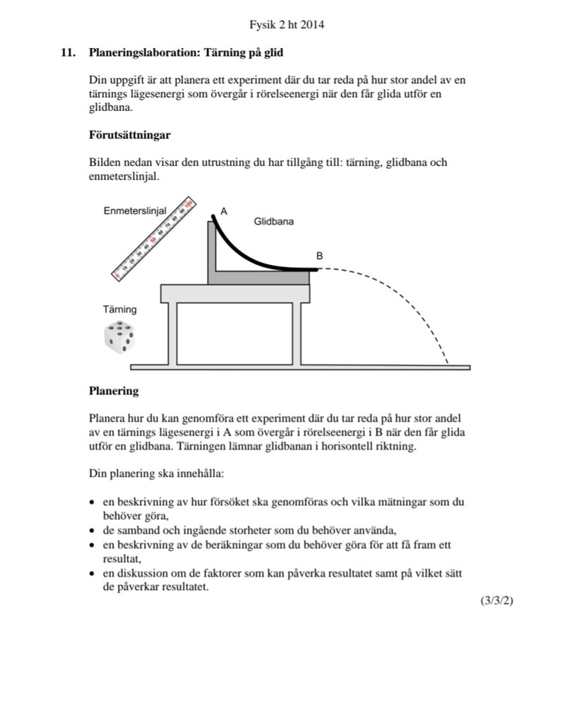 Du behöver veta höjden på rampen för att kunna beräkna hur mycket lägesenergi tärningen tappar under dess färd i rampen.