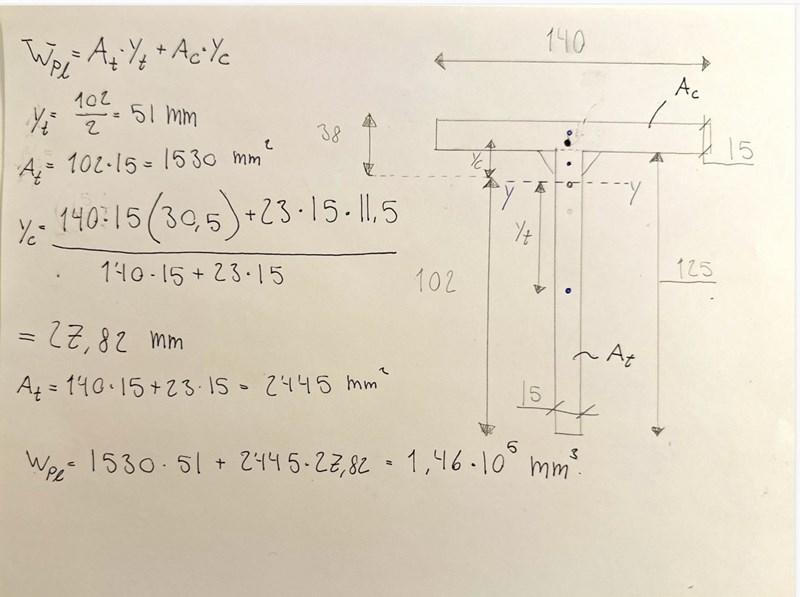 Som jag noterade i förra svaret sammanfaller inte neutrallager med TP om tvärsnittet har plasticerat. För din balktyp ligger den i övre flänsen vid genomplasticering.