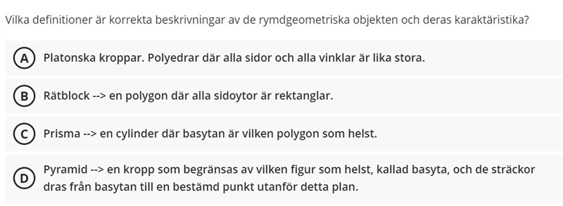 Så, trycker jag svarsalternativen för platonsk kropp och 28cm3 eller 35cm3 så får jag 0 av 30 poäng.