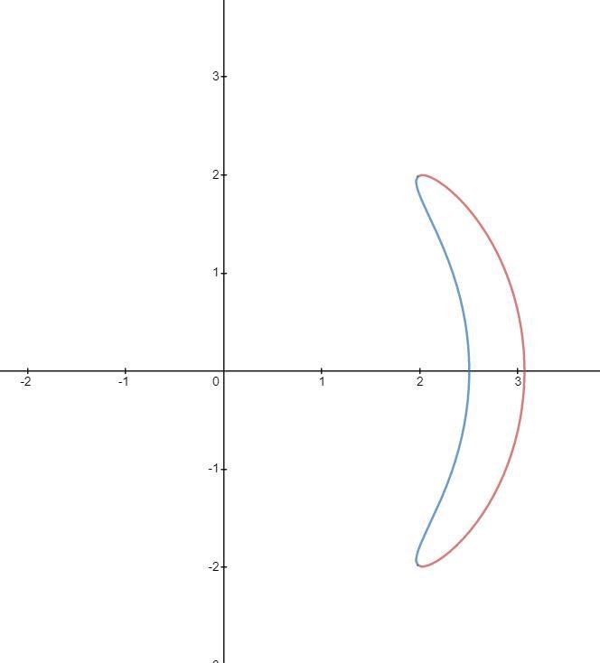 A=12-π4π4r1θ2-r2θ2 dθ\displaystyle A=\frac{1}{2}\int_{-\frac{\pi}{4}}^\frac{\pi}{4}r_1\left(\theta\right)^2-r_2\left(\theta\right)^2\ d\theta