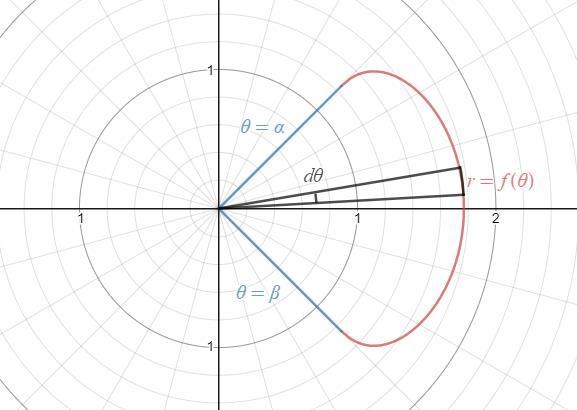 A=12αβfθ2 dθ\displaystyle A=\frac{1}{2}\int_\alpha^\beta f\left(\theta\right)^2\ d\theta