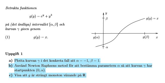 Alfa =-1 och Beta= 1, innebär ju att y är -1 och 1, g(y)=ey+y3 blir vid g(a)=1e-1 och g(b)=e+1