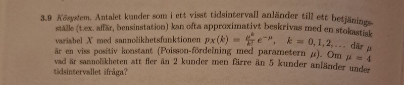 Jag har fastnat på denna uppgift. Jag vet att vi söker Px(4) då 2<=X<=5. Men hur ska man ställa upp detta?