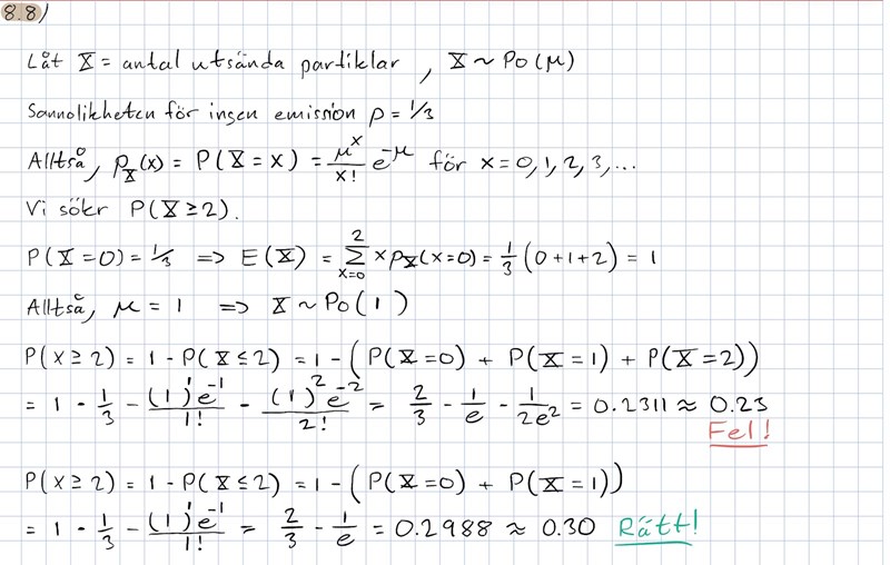 Calle_K skrev:P(X>=2) = 1 - P(X<2).