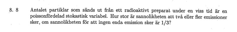 Calle_K skrev:Du vet från uppgiften att P(X=0)=1/3. Därmed kan du bestämma my.