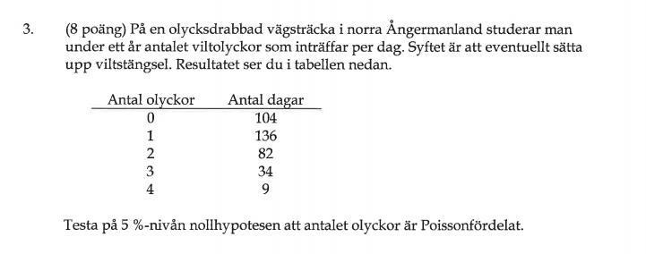 Det vore bättre om man istället för att beräkna förväntad frekvens med sannolikheten använde , där är antalet viltolyckor per dag.