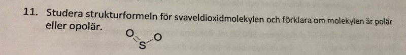Okej, jag antar att bilden är fel. Men då säger jag att den inte är polär för att polerna inte sammanfaller, det är ingen dipol bindning mellan atomerna för att den ej är symmetrisk. Rätt ?