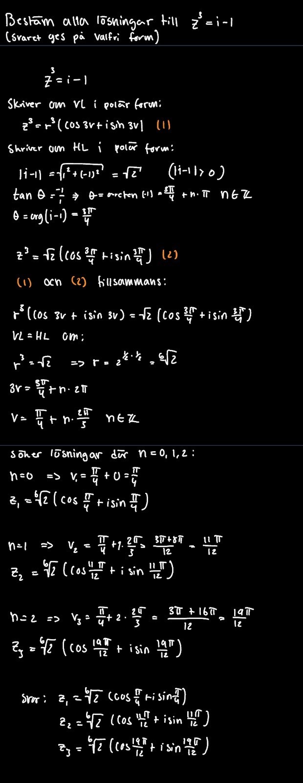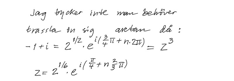 när n = 1 ger det vinkeln för θ = arg(i - 1) = 3pi/4 ?