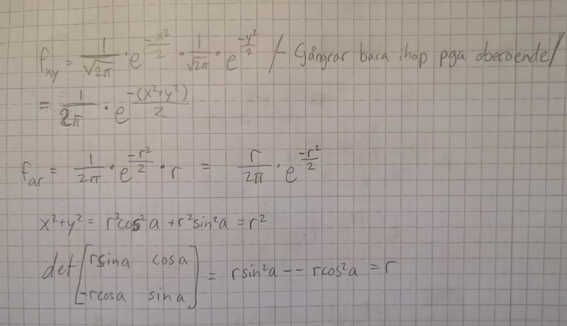 Du får veta att och vilket ger och Du får också veta att och är oberoende normalfördelade slumpvariabler N(0,1).
