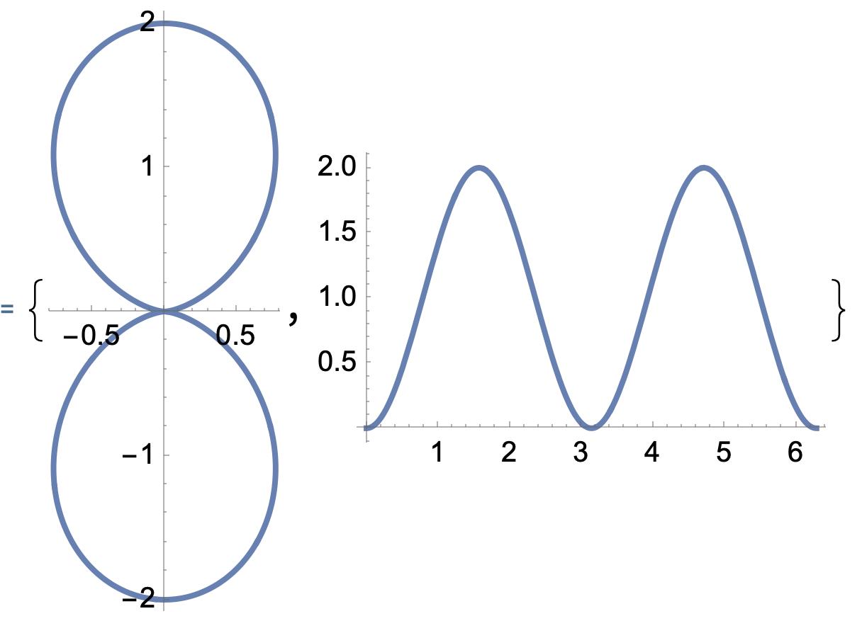 Den högra kruvan visar tydligt att r(theta) har 2 cykler/perioder och återkommer till origo 2 gånger innan periodens slut