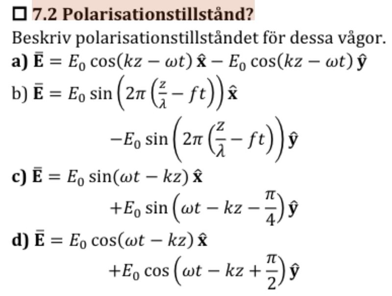a) den är linjärpolariserad, men hur får jag fram vinkeln?