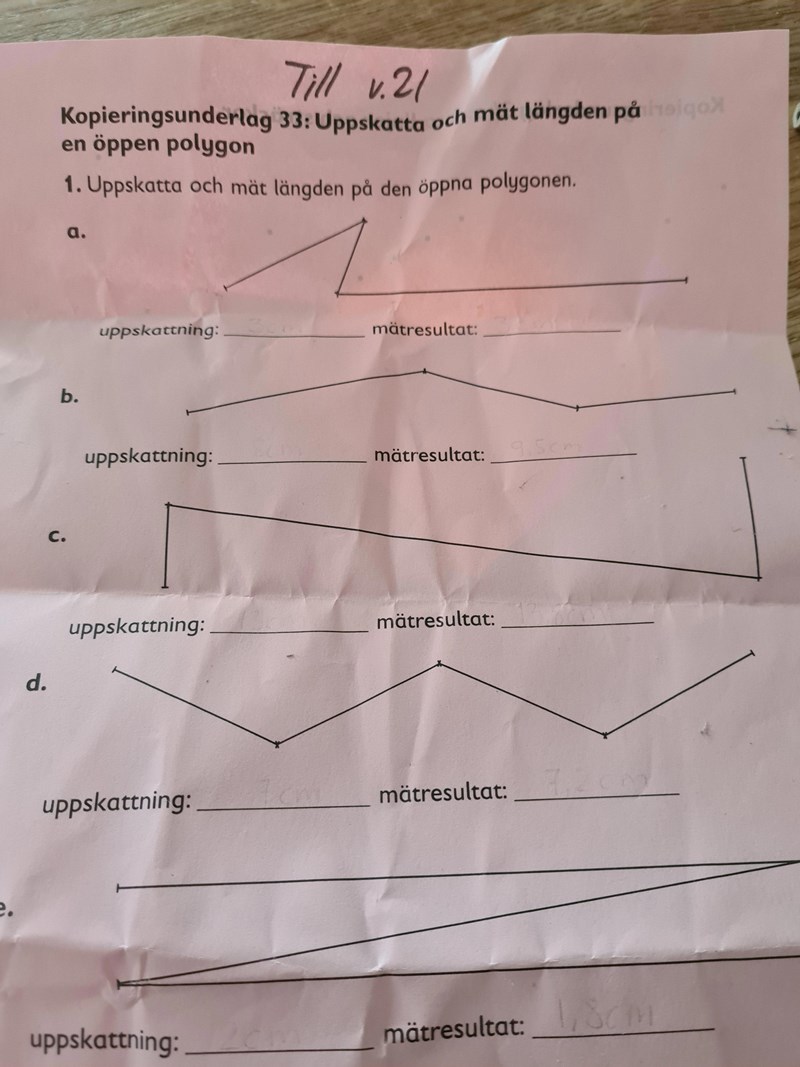 Är det någon som kan hjälpa mig! Min dotter har i läxa att uppskatta och mäta längden på en öppen polygon, hur gör man?