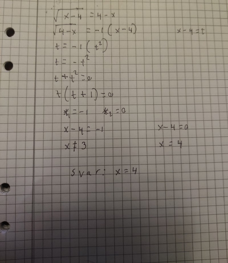 Du går svaret x=4 och jag också, men jag får ett till värde på x
