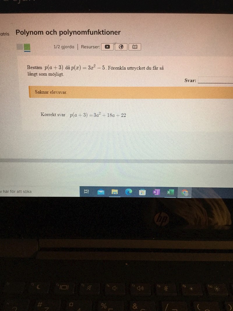 Du behöver att bestämma ploynomet p(x+3) och inte sätta den till noll. Om din uppgift var att lösa ekvationen p(x+3)=0 då kunde du göra det. När du delar svaret med 3 då för du ett uttryck för polynomet p(a+3)/3