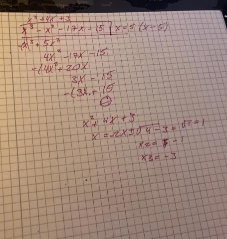 Trinity2 skrev:x^3 - x^2 - 17 x - 15 = (3 + 4 x + x^2)(x-5)