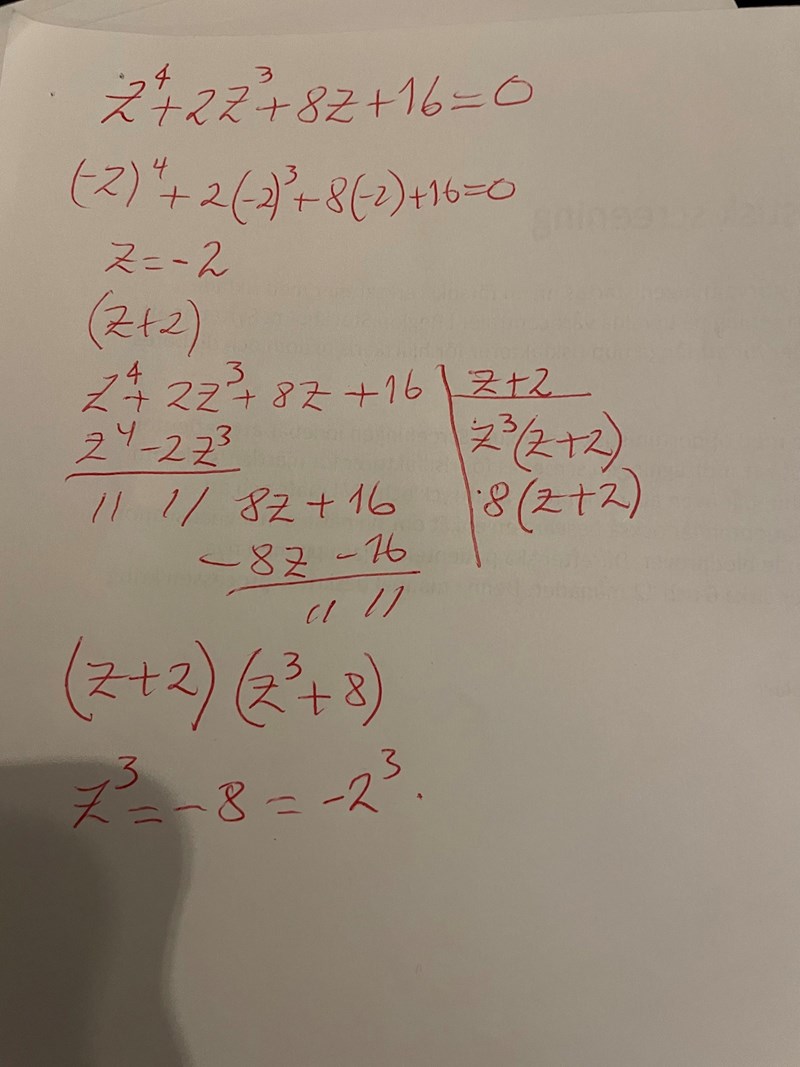 sen har vi z4 = -2 sen tidigare vilket alltså är samma sak som z2
