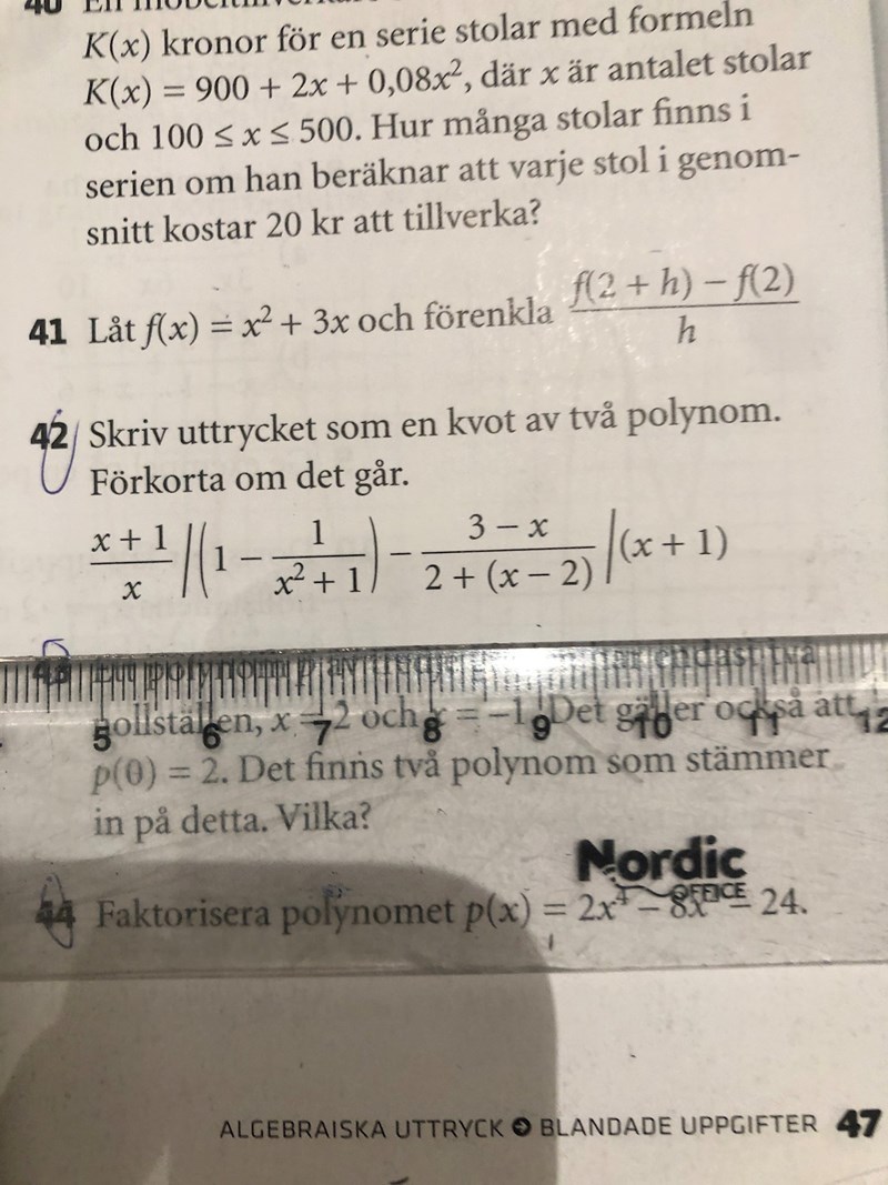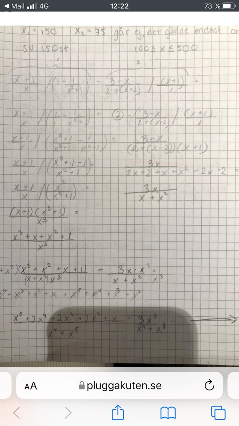 skriv uttrycket som en kvot av två polynom. Förkorta om det går.