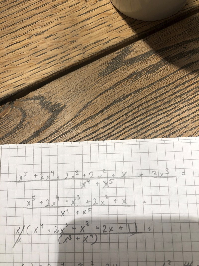 men i facit står det (X4 + 3X-X+2X + 1) / X + X3