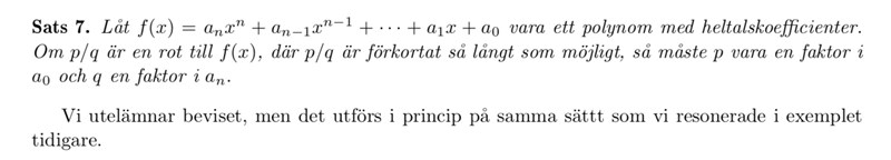 a) ekvationen p(x)=0 har en rationell rot. Finn den genom att tillämpa sats 7 i kurslitteraturen.