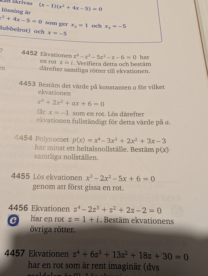 Jag undrar hur jag ska få reda på de två sista rötterna. Exemplen i boken hanterar inte en högre grad än X^2 i divisorn och inte matteboken.se heller vad jag kunde se.