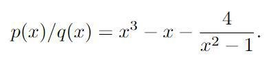 I ditt fall gäller att q(x) = x2 - 1, w(x) = x3 - x och r(x) = -4. Så detta förklarar svaret.