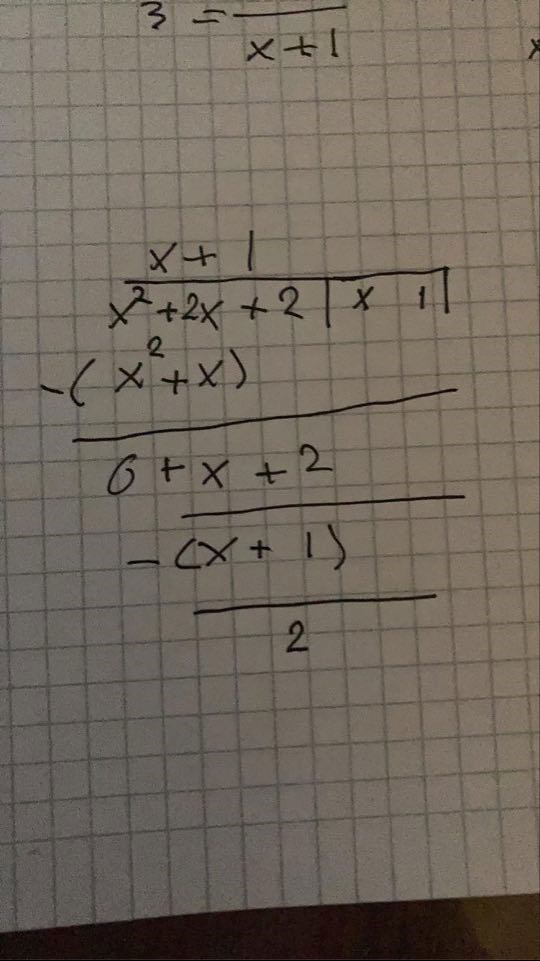 Med hjälp av liggande stolen så fick jag att (x+1)(x+1)+2 är lika med Men när jag skriver det som svar så blir det fel. Visst svaret ska bli : Rest 2=