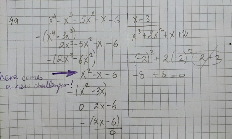 Men under polynom division dyker en andra delare (en andragrads polynom)