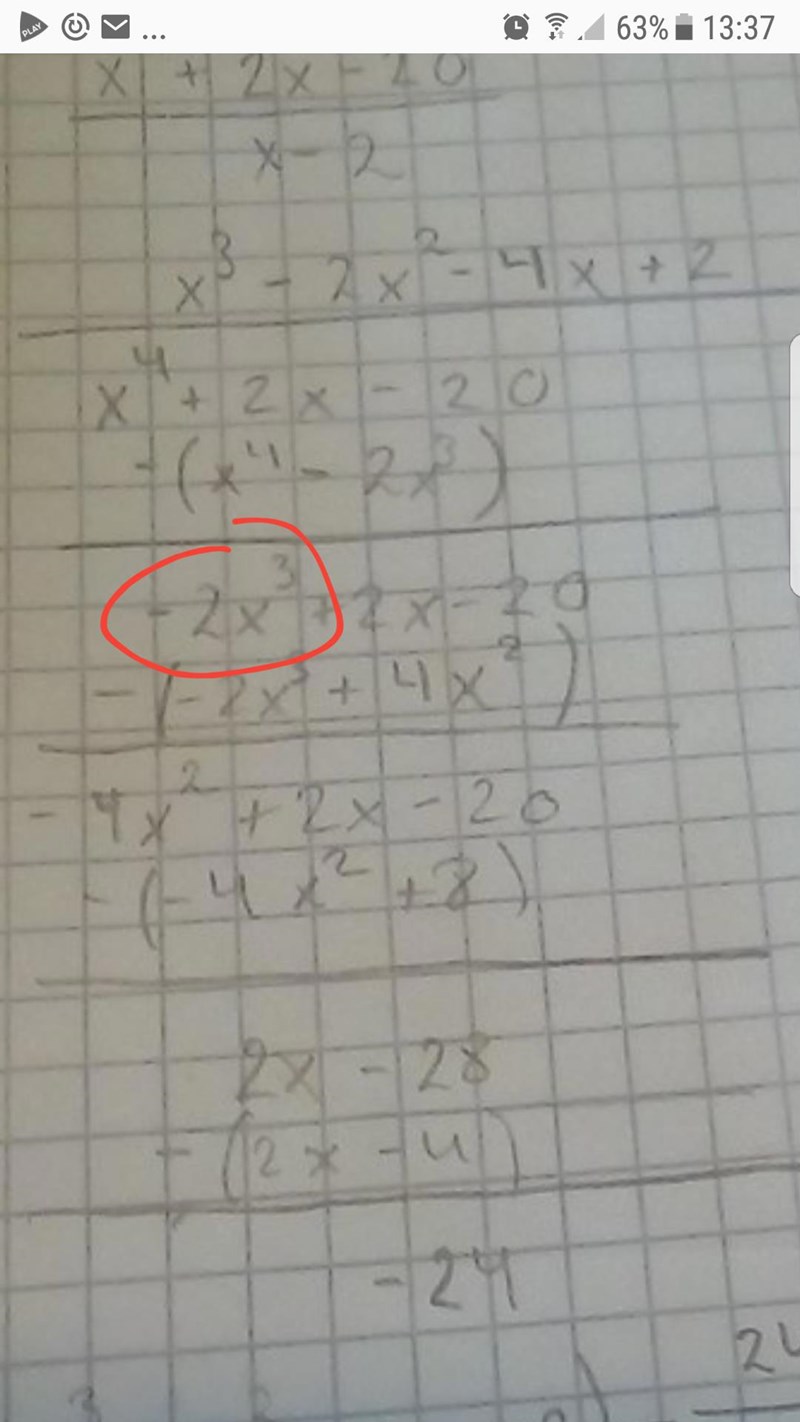 Du har fått fel tecken på x^3-termen. Den ska vara 2x^3, inte -2x^3 (rödmarkerat).