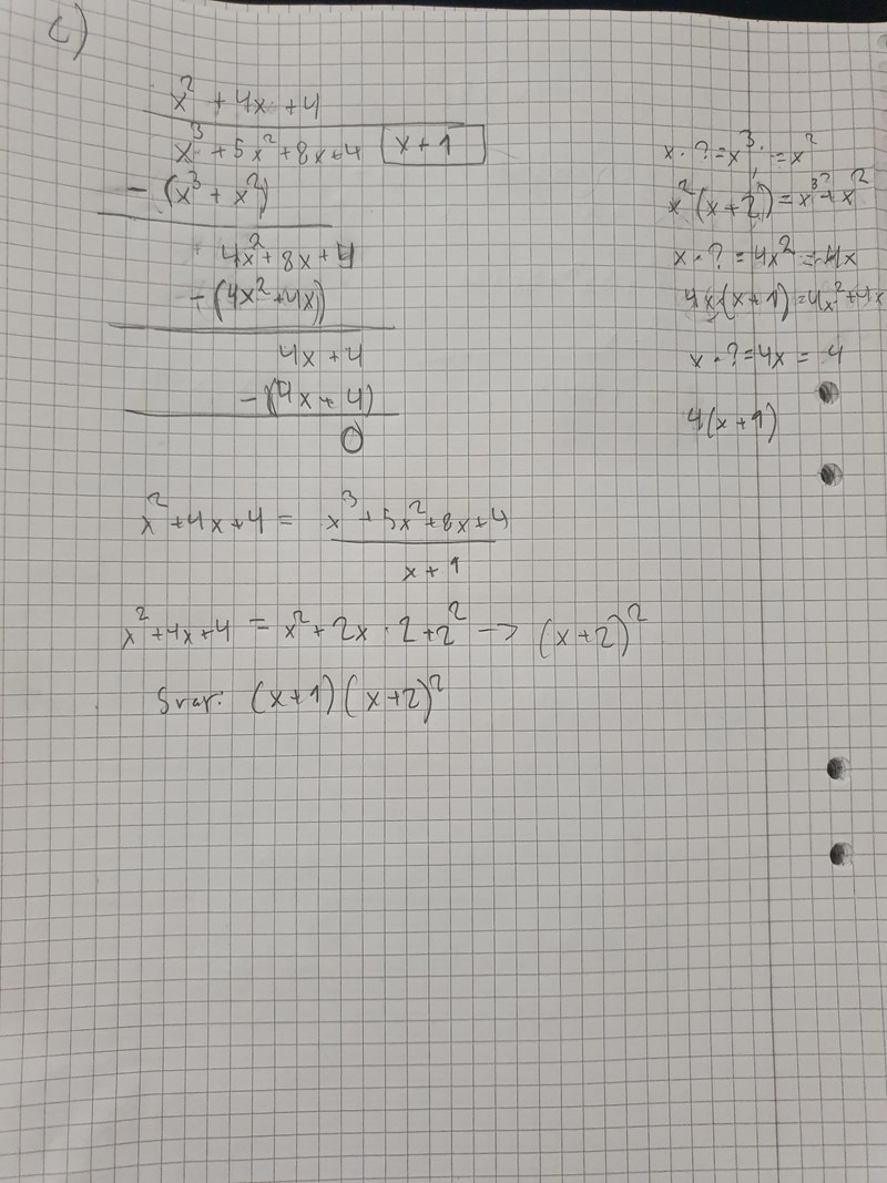 ursprungligen så var det att jag ska faktorisera polynomen p(x) = x^3 + 5x^2 + 8x + 4