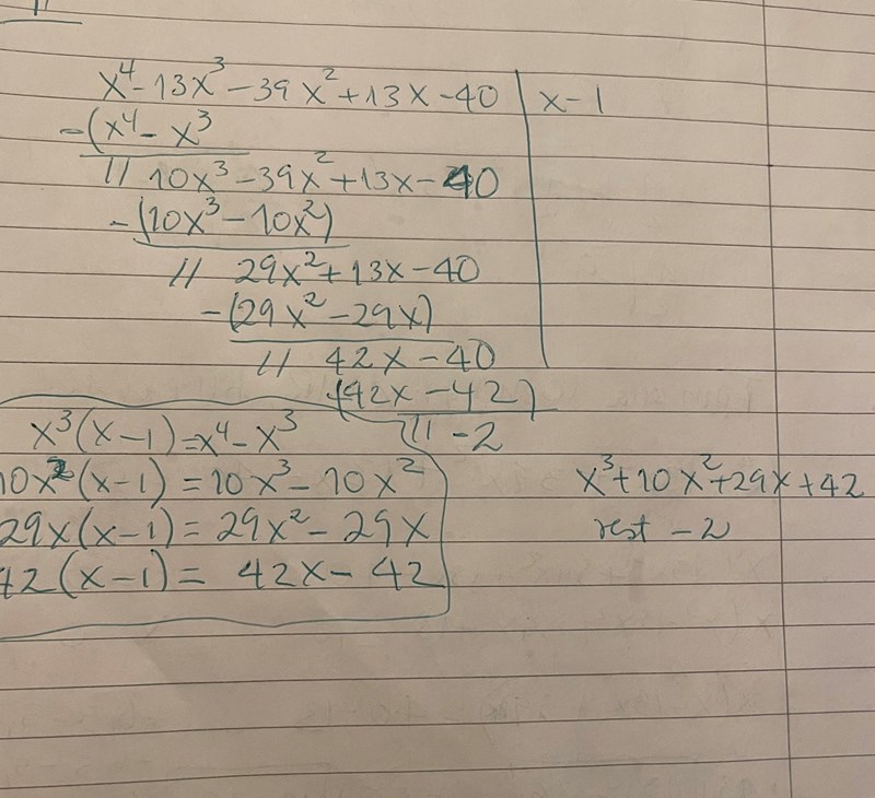 Just det, men det ska inte bli någon rest om 1 är en rot.