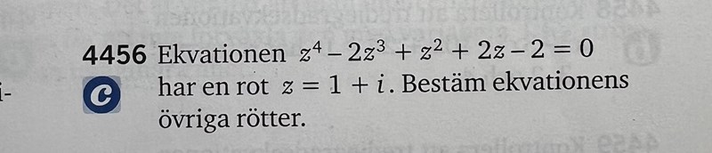 förstår att en annan rot borde vara konjugatet till den rot som är given, men hur får jag fram de andra 2 rätterna. Genom prövning?