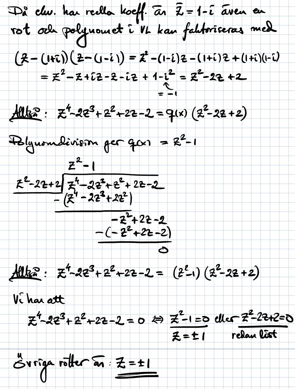 förstår att en annan rot borde vara konjugatet till den rot som är given, men hur får jag fram de andra 2 rätterna. Genom prövning?