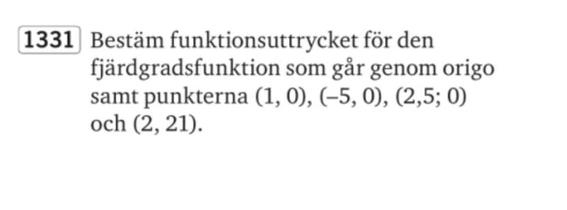 Ja, jag tänkte att de kanske skulle vara f(x)= k(x-1)(x+5)(x-2,5)(x-2)