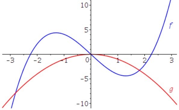 Två polynomfunktioner f(x)och g(x) är plottade nedan: