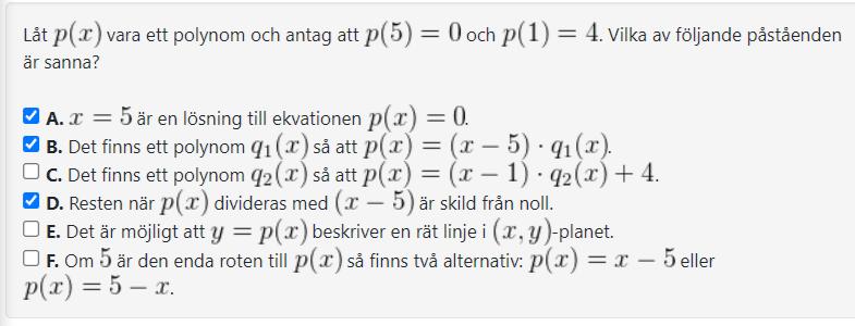 Insåg att jag tänkt väldigt fel och att det blev A, B. C och E som var de rätta svaren