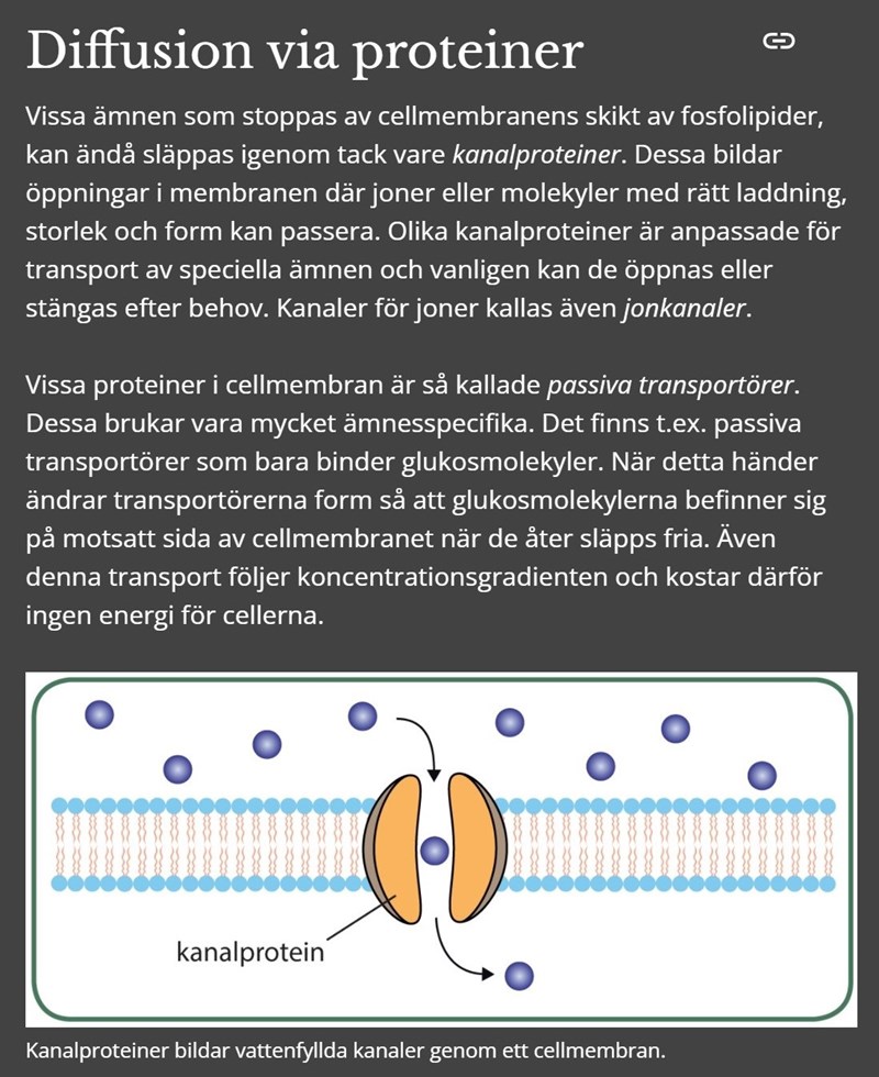 In book IRIS biologi 2 (sidan 70) says:" Olika kanalproteiner är anpassade för transport av speciella ämnen och vanligen kan de öppnas eller stängas efter behov. Kanaler för joner kallas även jonkanaler.