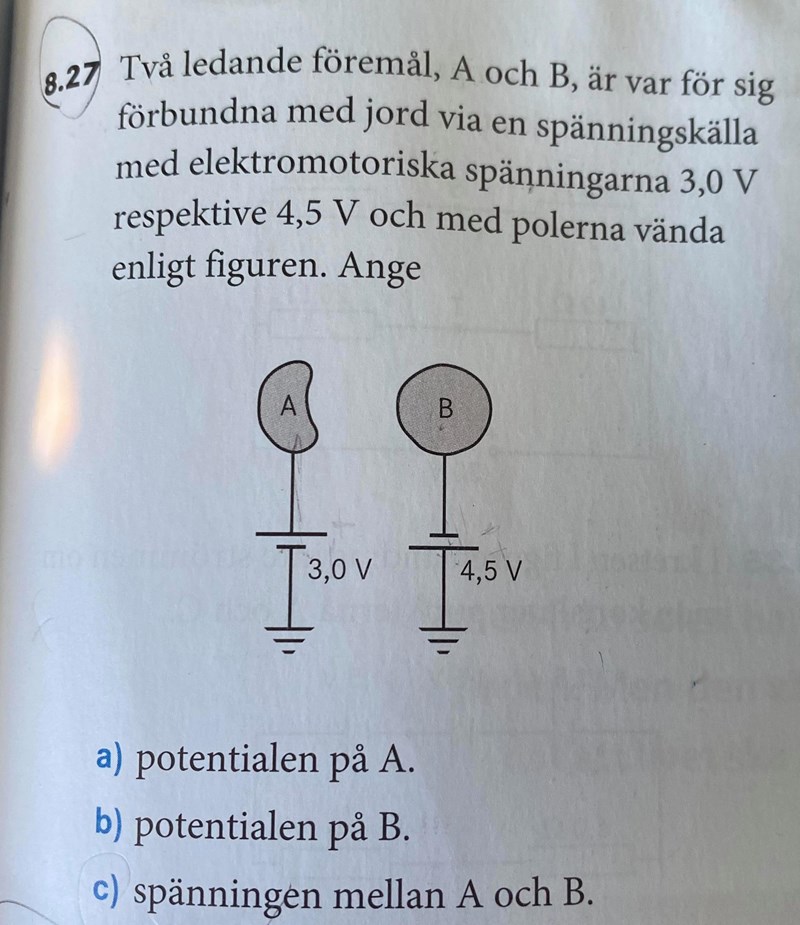 hej förstår inte varför svaret på c uppgiften blir 7,6 V. Borde man inte ta 3V+ (-4,5V) = -1,5 v ?
