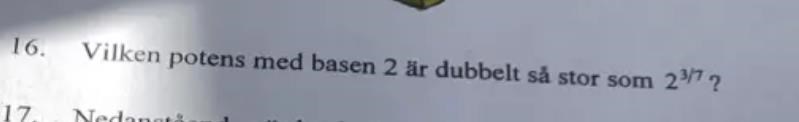 Tänkte att jag skulle räkna ut 2^3/7 först för att sedan dubblera det och göra det sedan till potens form? Bör jag fortsätta på det spåret eller tänker jag helt fel?